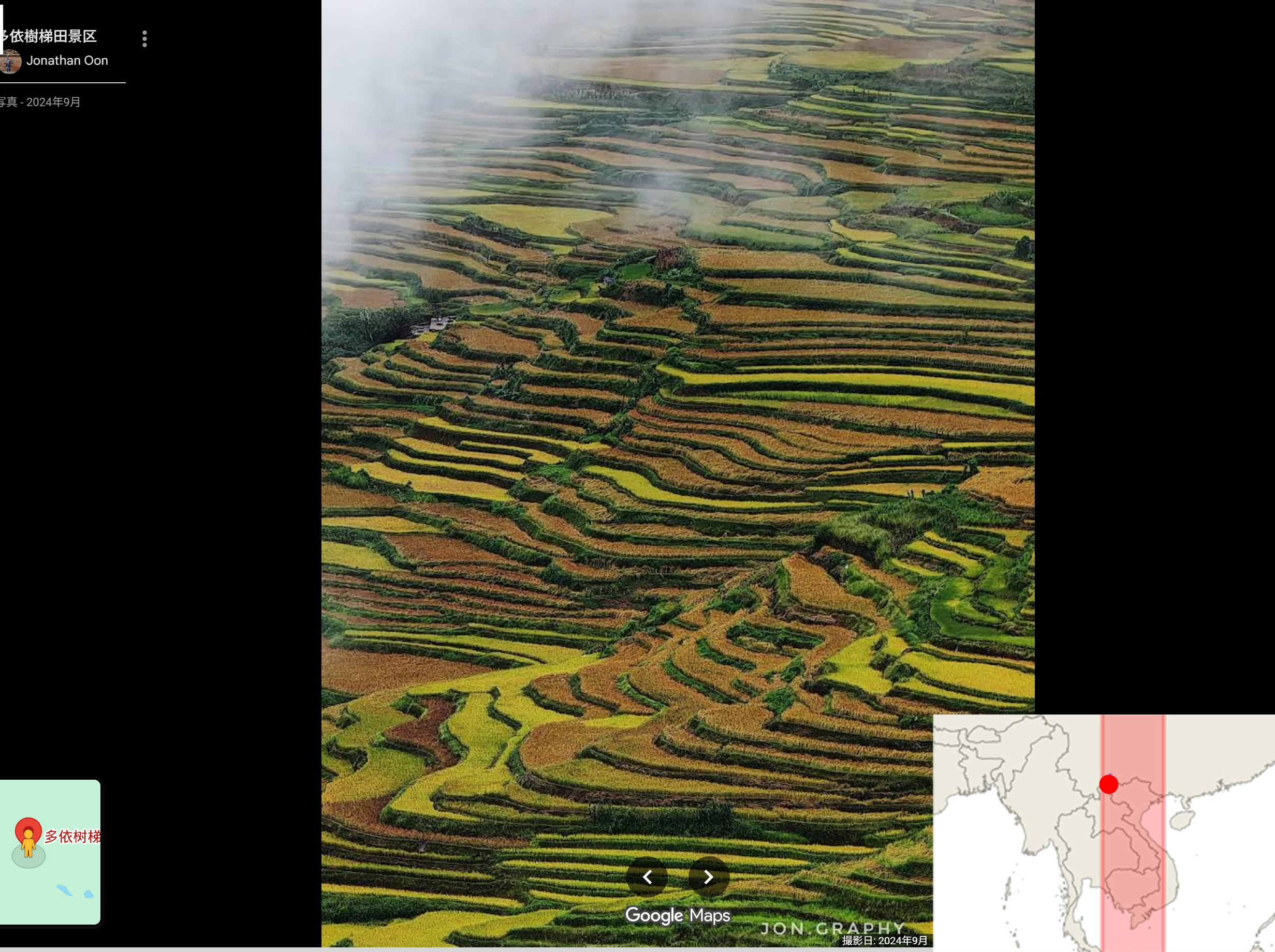 | 地図1 元陽県の位置と景観 Google Street Map などから作成 | |