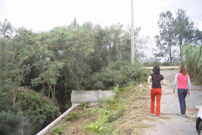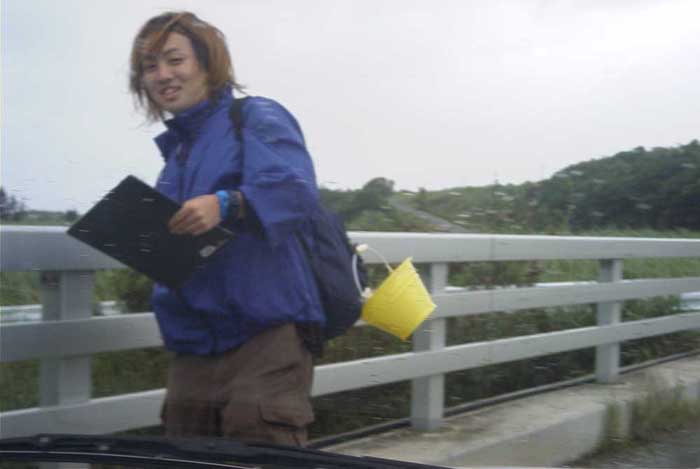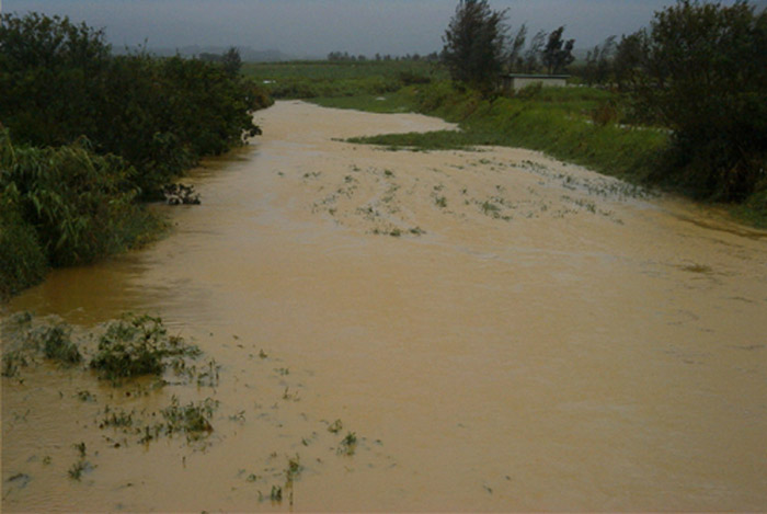 台風で調査できず。豪雨をぬって土地改良(改悪)事業の現場を見て回りました。耕地から流出した赤土がこのままの状態でサンゴ礁の海へ排出してゆく様子をみて、学生たちは愕然としていました。