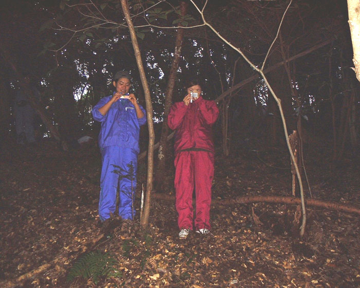 雨の照葉樹林内での調査風景(静岡県南伊豆町,東京大学樹芸研究所青野演習林)