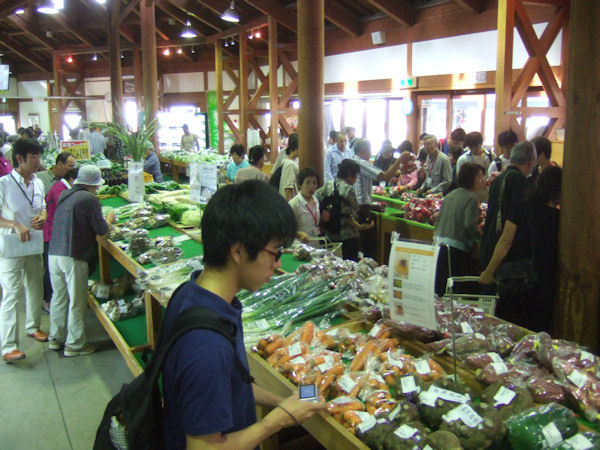 | 午後、田園プラザ川場にて最後の聞き取り。田園景観を資源としてむらづくりを進めてきた川場村。田園プラザは、交流拠点施設の一つです。 | ファーマーズマーケットも見学。学生たちはお土産もたくさん買っていたようです。川場村ファンになったでしょうか? |