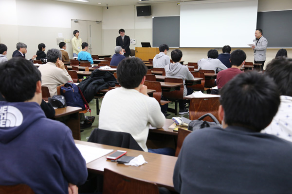| 長谷川ゼミのポスター発表 | 続いて講演会の始まりです |