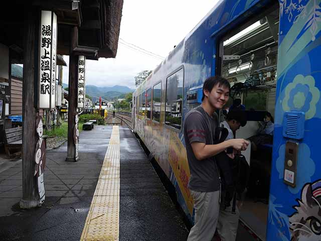 | 17 湯野上温泉駅に到着! | 18 足湯もあって最高の駅でした |