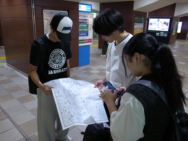 | 吉祥寺駅にて集合.今回は少数精鋭(!?). | 出発前にルート等の作戦会議. |