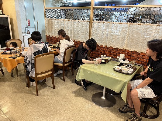 | 夕食後は調査結果のまとめと翌日の調査計画をおこないました。 | 夕食の写真は撮り忘れたので、代わりに朝食の写真を。 |