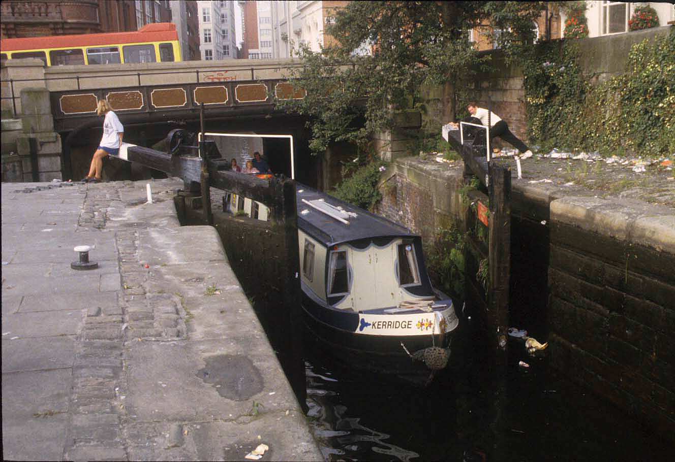 ナローボート(幅7.2フィート、長さ72フィート)といわれる幅の狭い船での運河めぐりは ポピュラーなアウトドア活動として親しまれている。写真2〜5はマンチェスター市内のロッチデ−ル運河。この運河は、マンチェスターと北東部のソーワビイブリッジ間51kmを結ぶ運河として1804年に全面開通した。この運河でも石炭、綿、化学製品等が運搬されていたが、1937年に閉鎖になった。しばらくは放置状態であったが、1974年にレジャー用運河として再び利用されるようになった(写真5)。