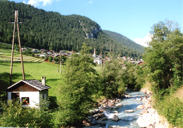 写真12. クシュニッツ川とトリンスの集落 川には大きい石が多い。 |