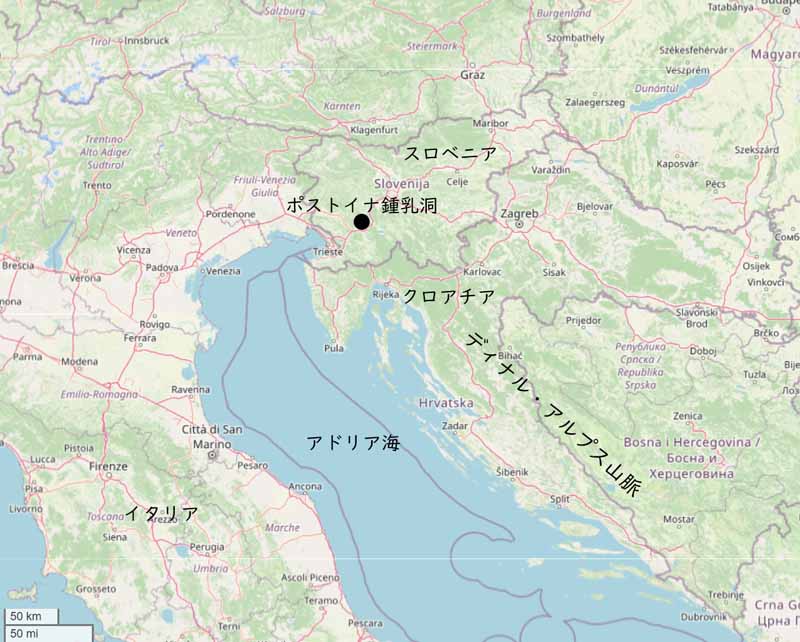 アドリア海沿岸に沿って北西から南東へ伸びる全長650㎞ほどの山脈をディナル・アルプス山脈とよぶ。ポストイナ鍾乳洞はこの山中にある(図1)。この鍾乳洞はスロベニア国内ではミゴヴェツ洞窟系(Migovec