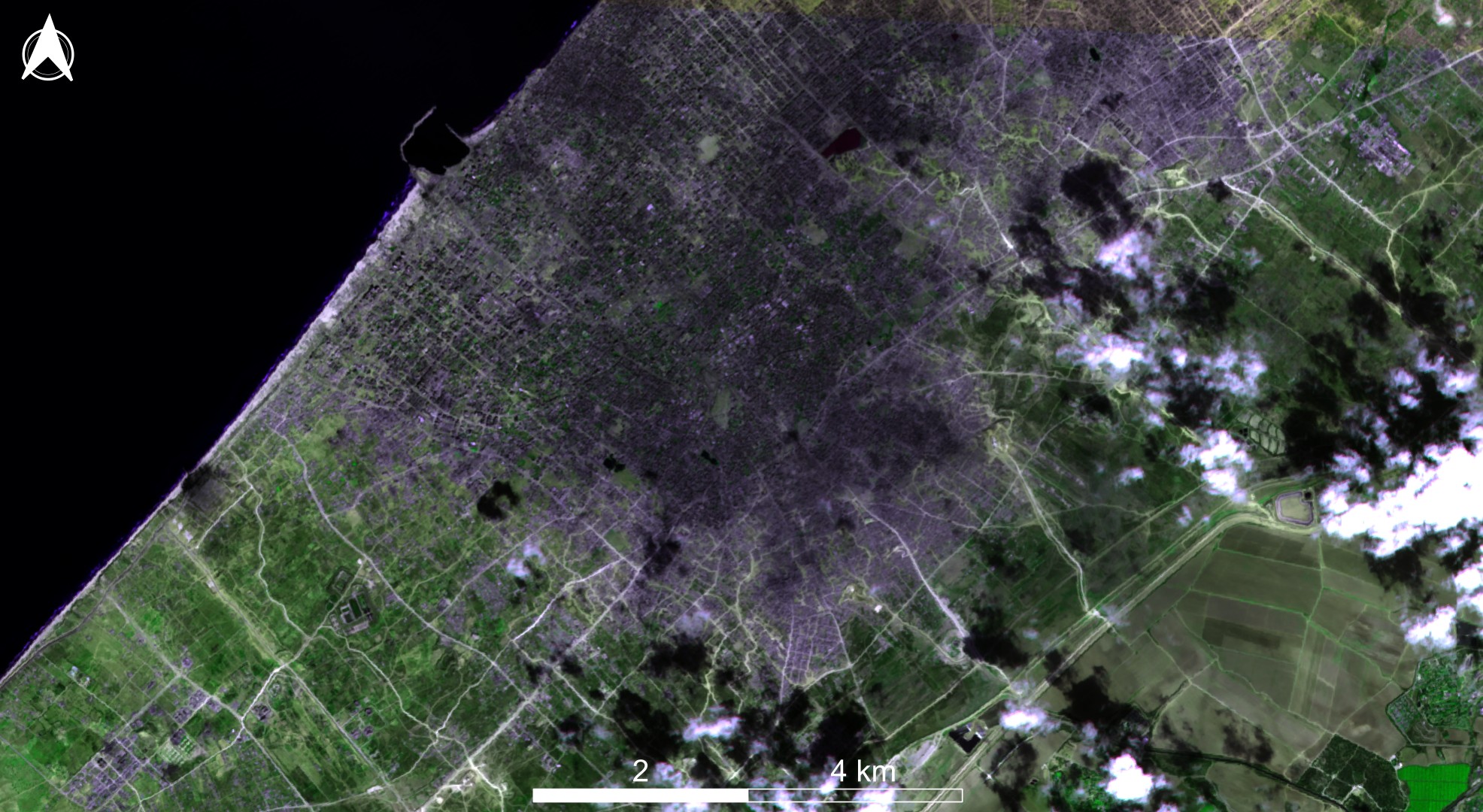 画像2 破壊されたガザ市 暗部はイスラエルの攻撃で破壊された市街地 SENTINEL2 2025年9月16日 RGB:432 |