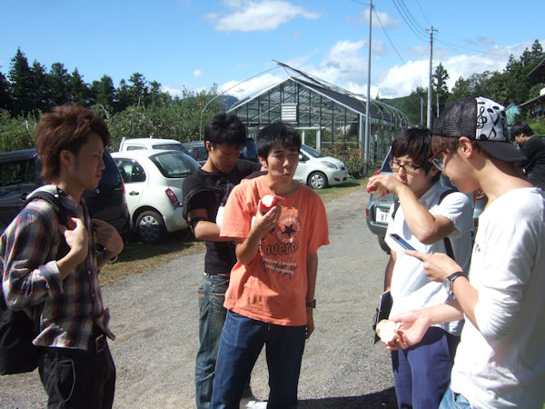 | 今年の川場村での実習テーマは,昨年に引き続き「農村における特産品開発の意義を考える」でした.ブルーベリーやリンゴなど果実を中心とした特産品(ジュースやジャムなどの加工品) 開発の実態とその地域経済効果を調べました. |