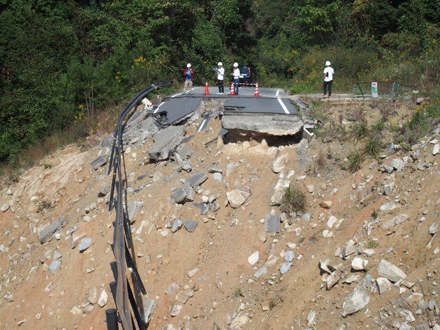 写真2) 2018年7月に発生した土石流の流下域での様子 |