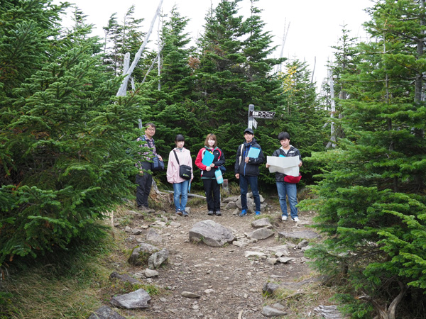 | 昼食は標高約2400mの展望台にて | 縞枯山の山頂にて |