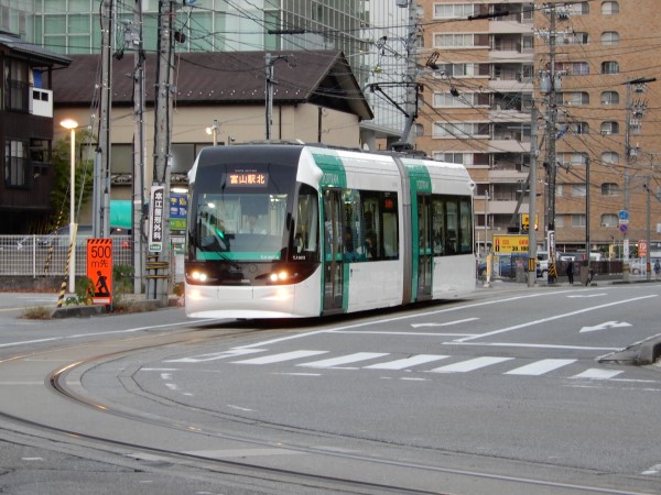 | 宿舎前の富山地方鉄道軌道線(市内電車) | 富山ライトレール「ポートラム」 |