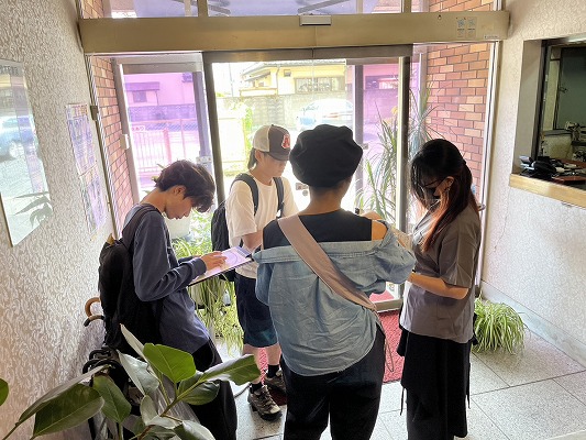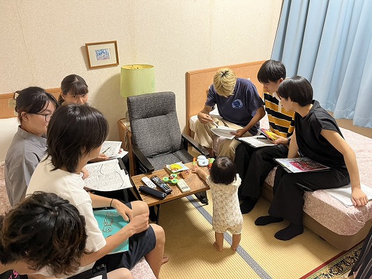 | 1日目の朝、宿泊先に集合です。 | 出発前の作戦会議。 |