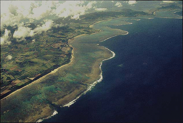 石垣島では、二十年以上に渡り土地改良事業や大規模な土地改変が続き、丘は削られ谷は埋められて、主に畑地が増やされました。その結果、水田や原野が失われて広大な「優良農地」が生まれたのです。しかし、平坦な農地からは、降雨のたびに亜熱帯特有の赤い表土が海へ流出する現象が、日常的にみられるようになりました。大量の化学肥料が表土とともにサンゴ礁に流れ込み、生態系の変化も起こっているようです。