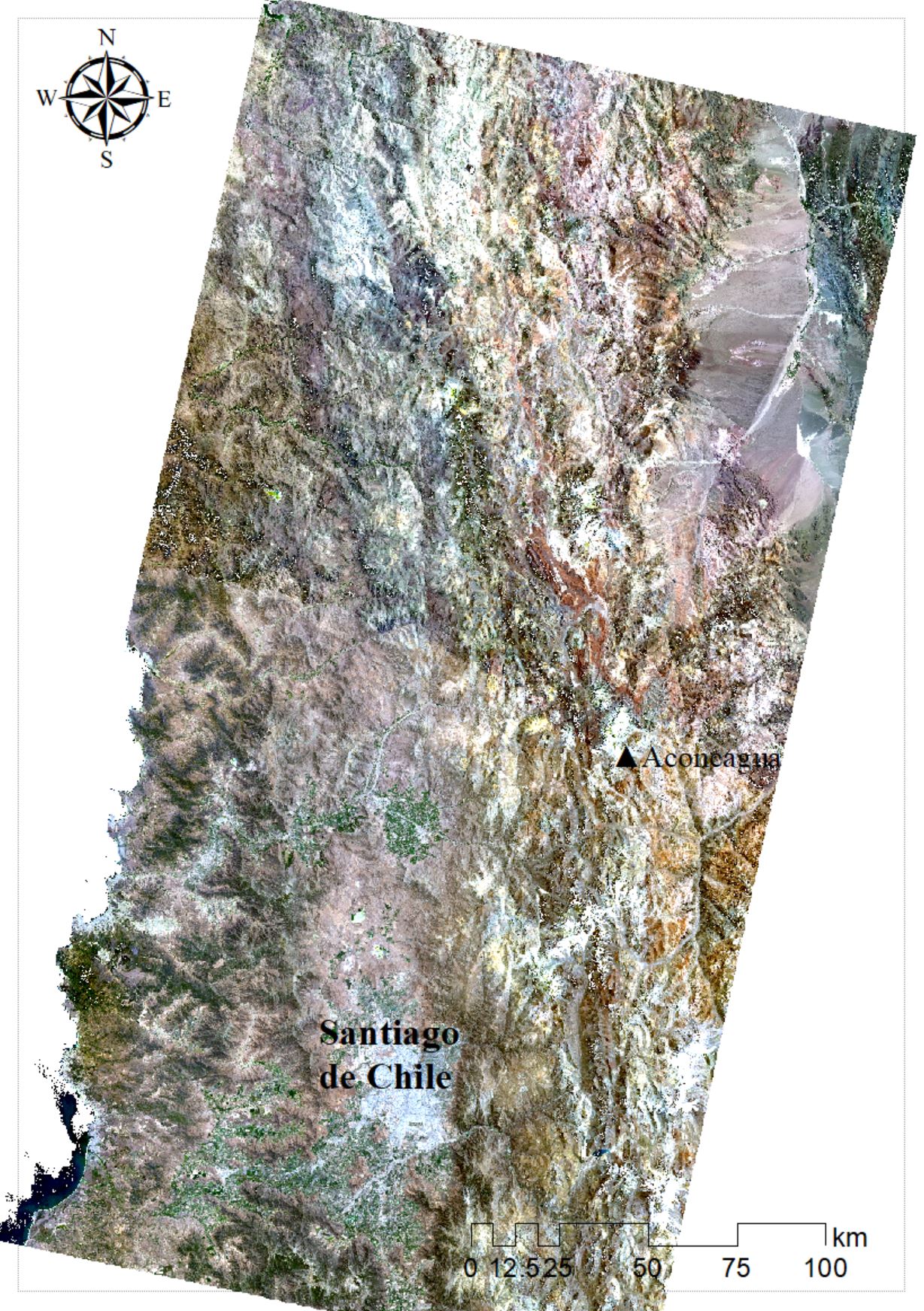 画像2   2021年1月取得,アコンカグア山頂付近   LANDSAT 8 RGB:432