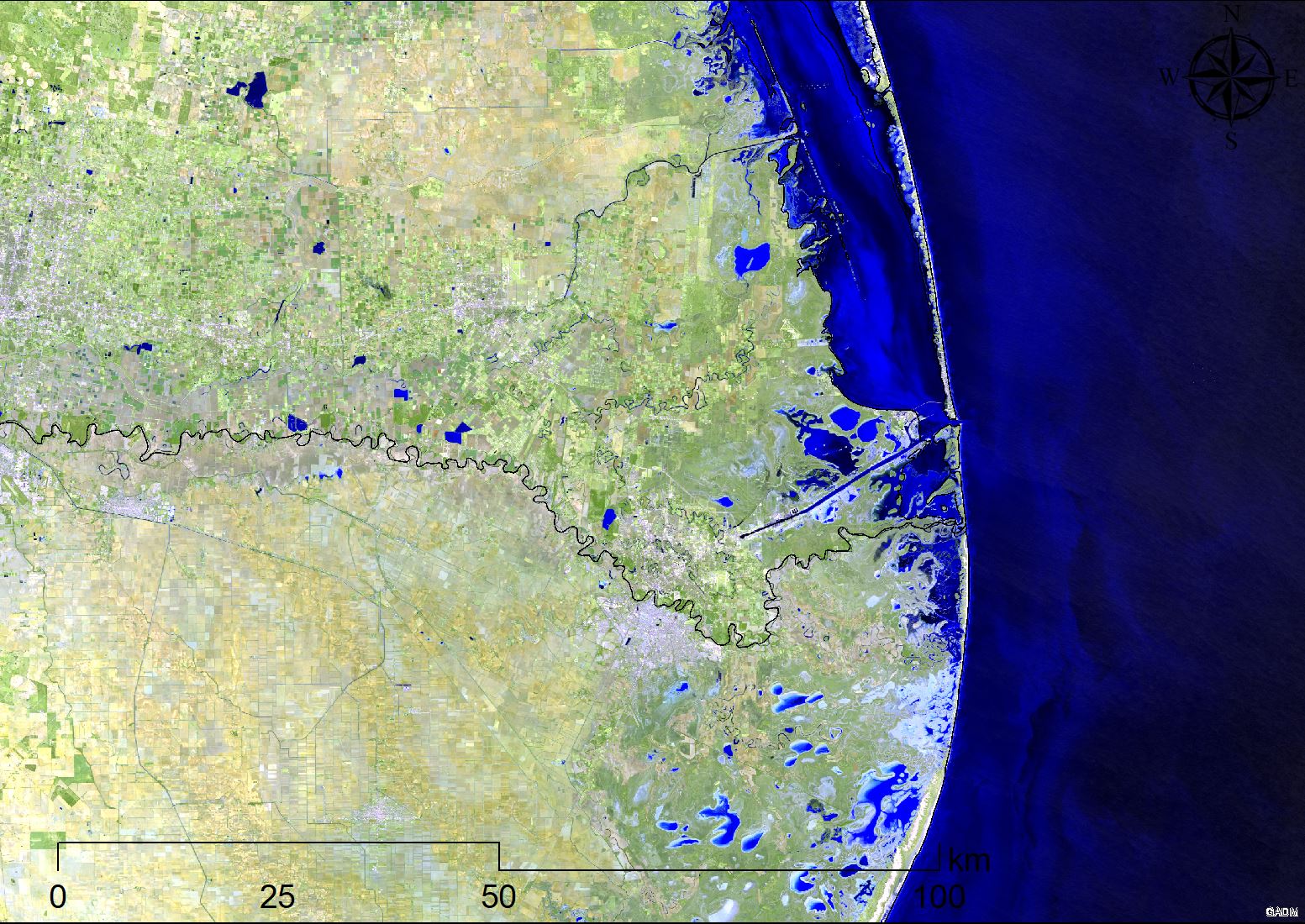 「カラーコンポジット画像の比較でみるリオ・グランデ川 米・メキシコ国境」