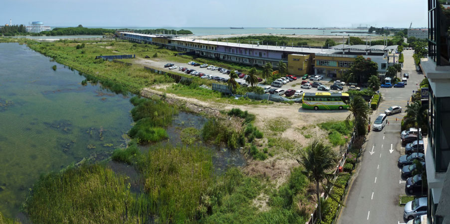 | 近代以降、国際的な貿易港としての地位はシンガポールへと移転し、ムラカの港湾機能は衰退してしまいましたが、観光地化した市街地から少し離れた海岸部へ行くと、マラッカ海峡を往来する船の 姿を今でも望むことができます(写真12)。 |